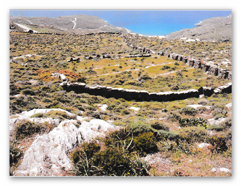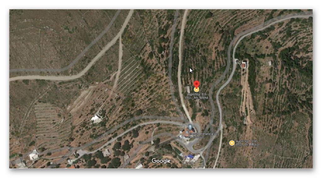 Greater Land plot (25490 sq.m. / 6,37 acres) on the sloppy planes of Kato Lamyra, just on the back-view of HORA town , very near to it and the beaches aside it. It also contains a stone-built pigeon-tower and 3 other older stone-built little buildings used as storage and farm-items . It has its own water well with the old iron-made mechanical pump in use. Its surface is schemed in the tradittional/ local way or “staircase levels” to provide wide planes for plantation without any problem. Sale price : 500000 Eu.
