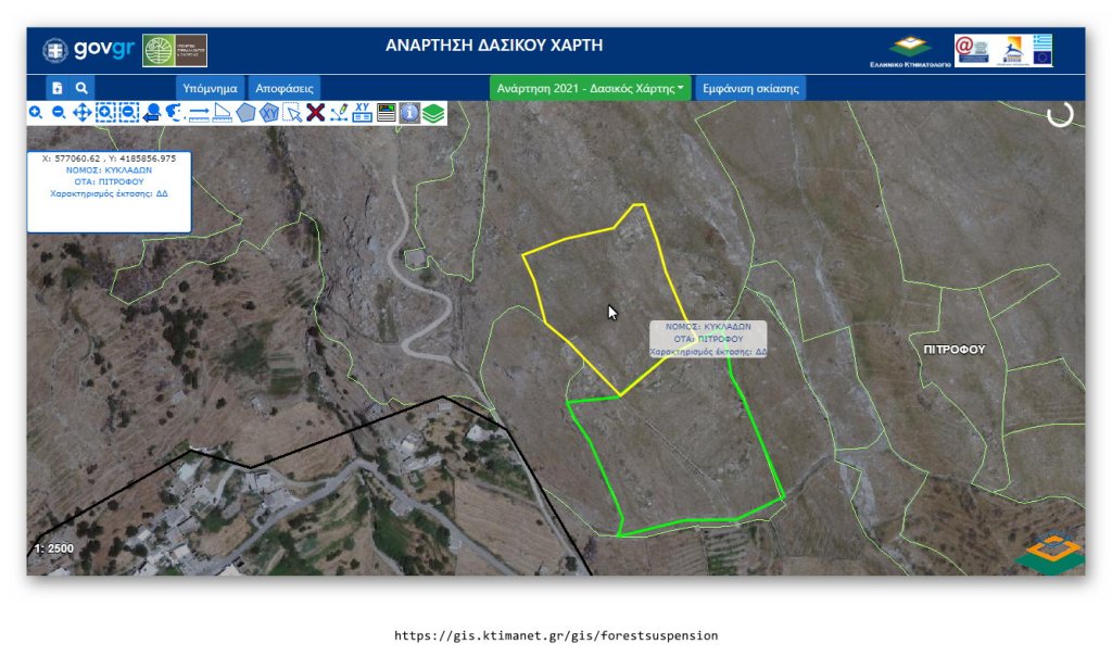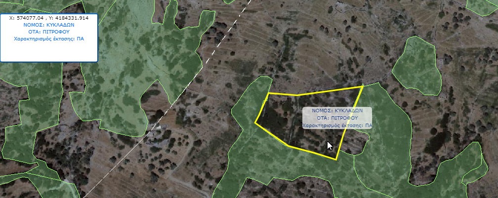 Land plot ideally located by the main road of Andros island , at the entrance PITROFOS village , overlooking the valley below as well partly have a fa view to the sea at the eastern part of Andros island . It has a surface of 4016 sq.m. and is permited to build a vacation house of 155 sq.m. or a much bigger “mountain retreat” for mountain hitch hikers – that is a well organised outdoor activity on Andros island . Its easy approach will make the building works easier than any other plot available. Sale price : 50000 Eu.