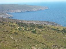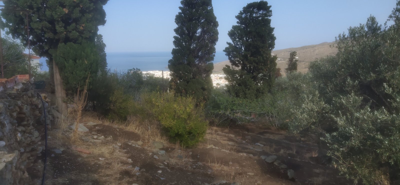 This land plot is located on higher mountain plane , out of Melida – area of PITROFOS village – overlooking the valley below as well partly have view to the sea at the western part of Andros island , just under the central road’s cross junction named “Stavropeda”. It has a surface of 8729 sq.m. and is permitted to build a vacation villa of 173 sq.m. or a much bigger “mountain retreat” for mountain hitch hikers – that is a well organised outdoor activity on Andros island . Sale price : 75000 Eu. (negotiable)