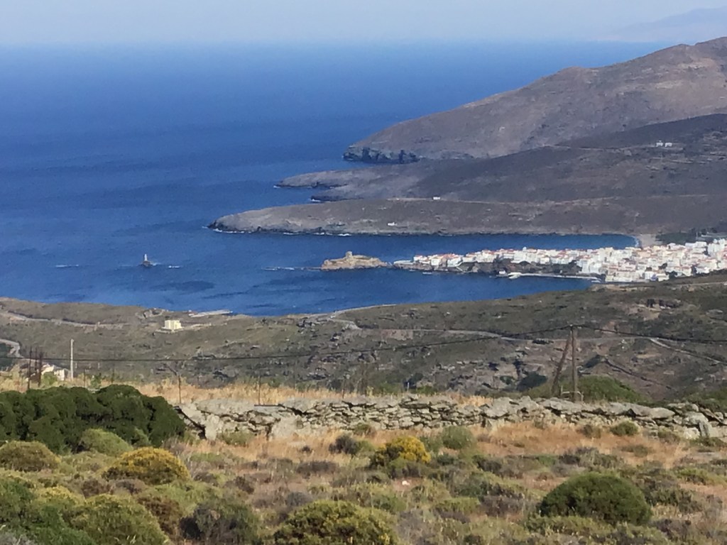 This land plot is located on higher mountain level on top of PITROFOS village , an area with the local name “Galanou” – overlooking the valley below as well partly have a fa view to the sea at the western part of Andros island , just under the central road’s cross junction named “Stavropeda”. It has a surface of 12229 sq.m. and is permitted to build a vacation villa of 195 sq.m. or a much bigger “mountain retreat” for mountain hitch hikers – that is a well organised outdoor activity on Andros island . Sale price : 85000 Eu. (negotiable)