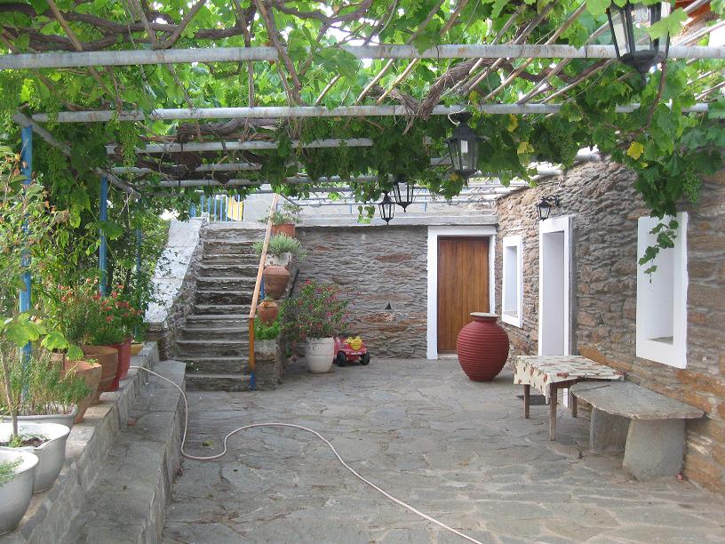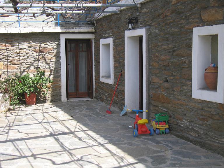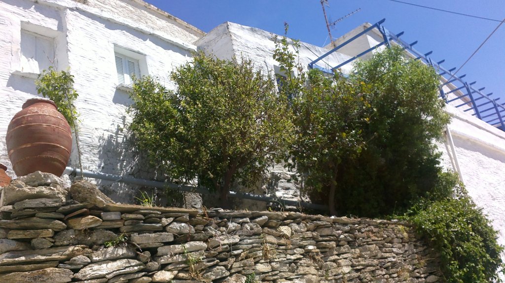 Below the traditional village of APOIKIA , only 8 km from the town of HORA, this medium sized farm-house (125 sq.m.) is built on 2 storreys , about 100 years before , but fairly well preserved and renovated . It is surrounded by a fully planted and irrigated farm land plot of 1769 sq.m. surface, near to Nature and in a quiet environment., and still in short distance they can have every needed services as well the traditional way of living of Greek villagers. Its ground floor (75 sq.m.) is used for warehouse mainly but can easily be converted to a modern penthouse , while the house on upper floor (50 sq.m) includes one bedroom, living room , small kitchen and a bathroom , with an ample terrace in front of it. It is easily approached from a road passing just next to it. Sale price : 280000 Eu.