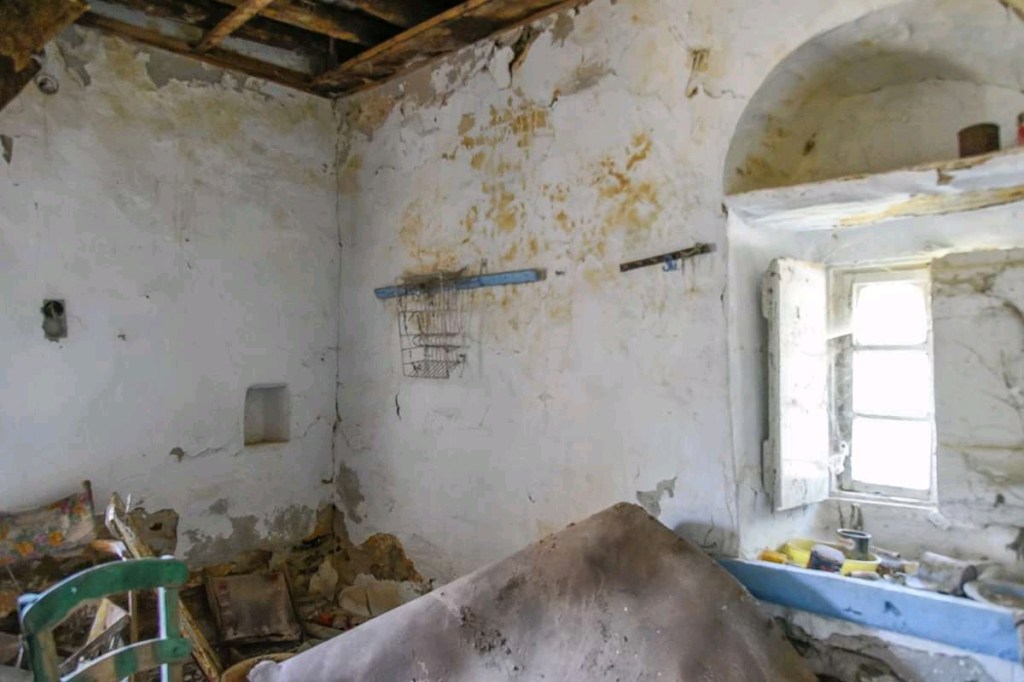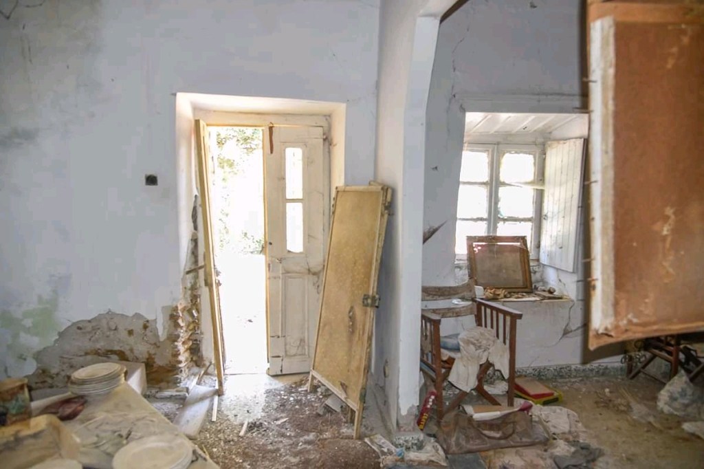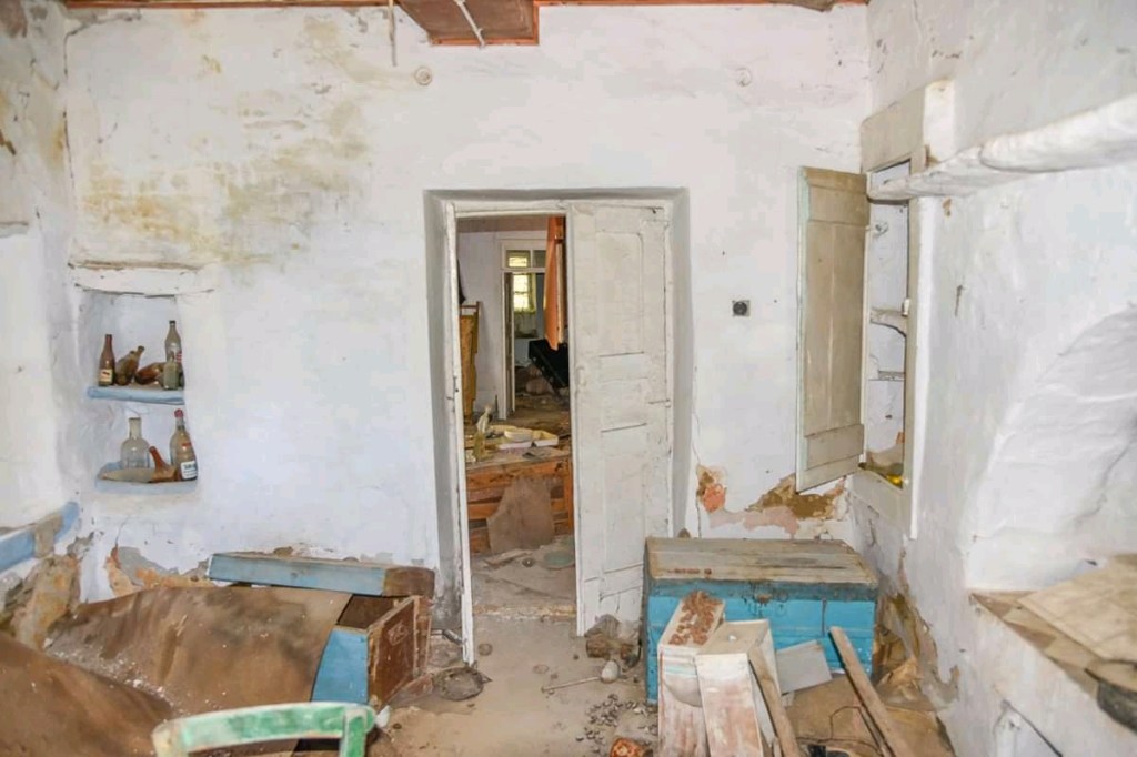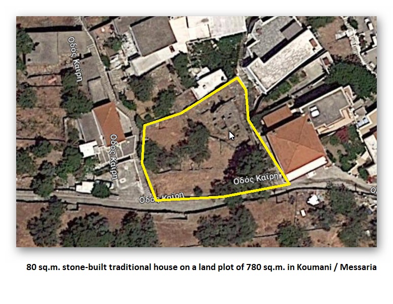 This is a typical ground floor village house built with local lime-stone thick walls that can carry any roof structure , even a new floor structure on top , while the older wooden roof with tiles has collapsed. Its indoor surface measure 80 sq.m. and is built on a land plot of 710 sq.m. centrally located in Messaria village and the area named \”Koumani\”. It has a nice view to the opposite mountain and the valley below, where the villages of Lamyra , Ipsilou and Strapourgies are spread , resembling white doves on a green scenery. Sale price : 90000 Eu.