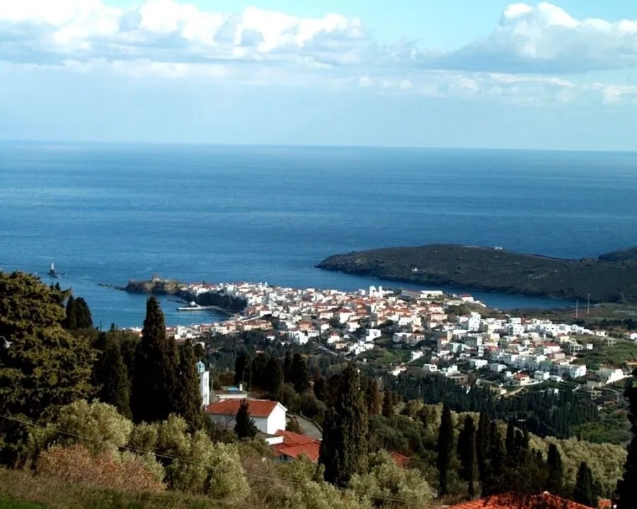 Older stone-built and semi-ruined house (74 sq.m. in 2 floors) on a land plot at a surface of 944 sq.m., located on the most central spot of the traditional village of Kochylou higher slopped on a mountain , 5 km far from ORMOS KORTHIOU and 10 km from HORA (town of Andros). The village itself is located on fairly inclined slopes and has the most magnificent and panoramic view of Ormos Korthiou and its gulf , the coastline and the beaches beside. The plot is ideal for a quiet modern vacation home or a group of vacation apartments for rent, includes some old olive trees and is approached by a short pavement road covered with lime stone plaques. Sale price : 95000 Eu.
