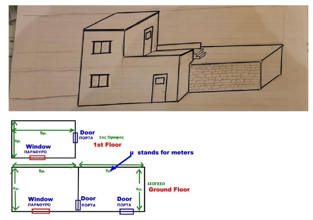 This is an exceptional examlpe of local traditional House building in villages , using lime-stone as the basic material , that except from the secure and stable construction methos, offers intersting thermal and noise insulation, considering that no modern and chemical materials were used or even known – almost 1-2 centuries before !! With an inner useful area of around 95 sq.m. , on ground floor and with extra semi-basement space for warehouse, located on a plot of 175 sq.m., it is ideal for someone that wish to be a “Master builder of his own / DIY” , renovating it either at steps – that may take longer – or quicker by signing a Renovation contract with our local Building Company – ANDRIATTICA Ltd. Sale price : 130000 Eu.