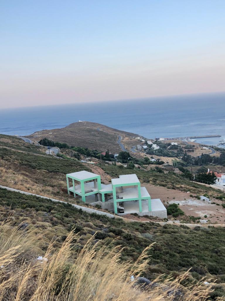 This is the dreaming-Top class property you could expect to find on the island of ANDROS, but possibly among other Greek islands too !! Fine designed to become a luxurious Villa with rich inner spaces but also lot of surrounding open spaces,on a land plot of 4200 sq.m. , it has an inner – useful area of 250 sq.m, on two different floors including also a spacious basement, constructed around 2016 as a basic Building Structure from reinforced concrete , as well also semi-built a very comortable swilmming pool next to the Villa. Its unique location, in consideration of the easy access by the main road of the island , connecting CHORA Town with a number of traditional picturesque villages and an “Eagle’s Eye” view from above of the whole Eastern coastline, the small Harbor and Marina (where luxurious yachts berth all during the Summer, owned by local Andriots – shipowners and friends of them) can bring you in an “Elite” of people, doing vacatioin and gathering for fun, swimming and dinner at the ANDROS NAUTICAL CLUB !! Feel like a tycoon yourself by just chosing to buy this Villa, finishing it upon your own choices and ASKING TECHNICAL & ARCHITECTURAL CONSULT. from our local company – ANDRIATTICA Ltd. Sale price : 390000 Eu